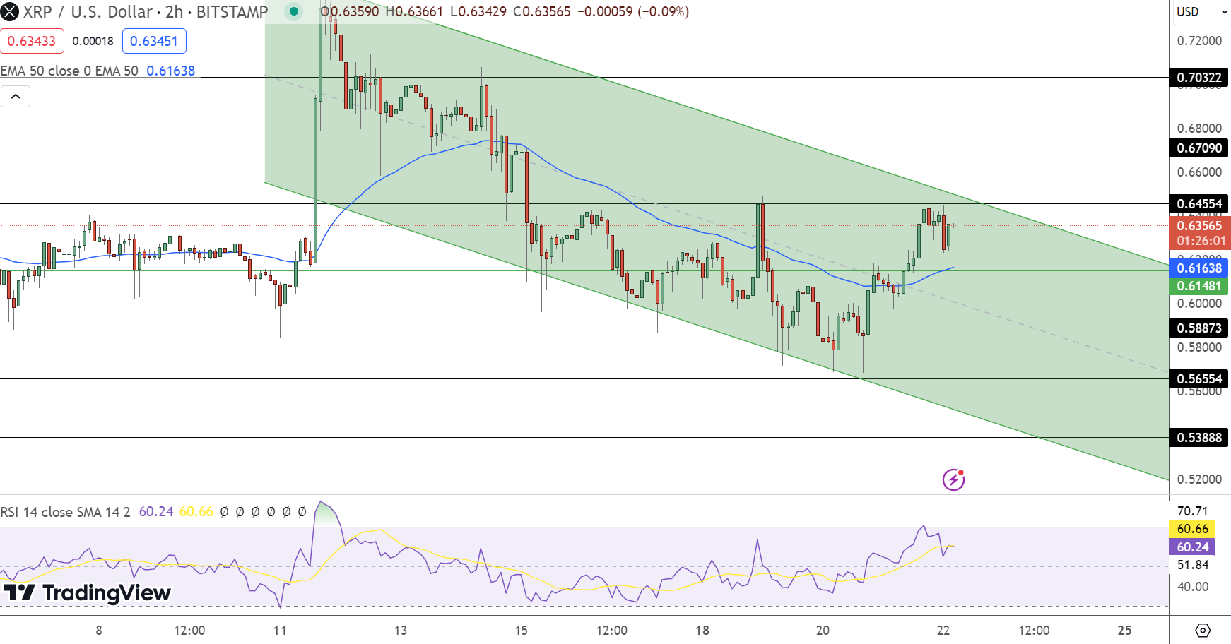A decisive motion past these markers may considerably affect XRP’s market course. The Relative Strength Index (RSI) at 60 suggests a barely bullish momentum, whereas the 50-day Exponential Transferring Common (EMA) at $0.6164 affords further help.